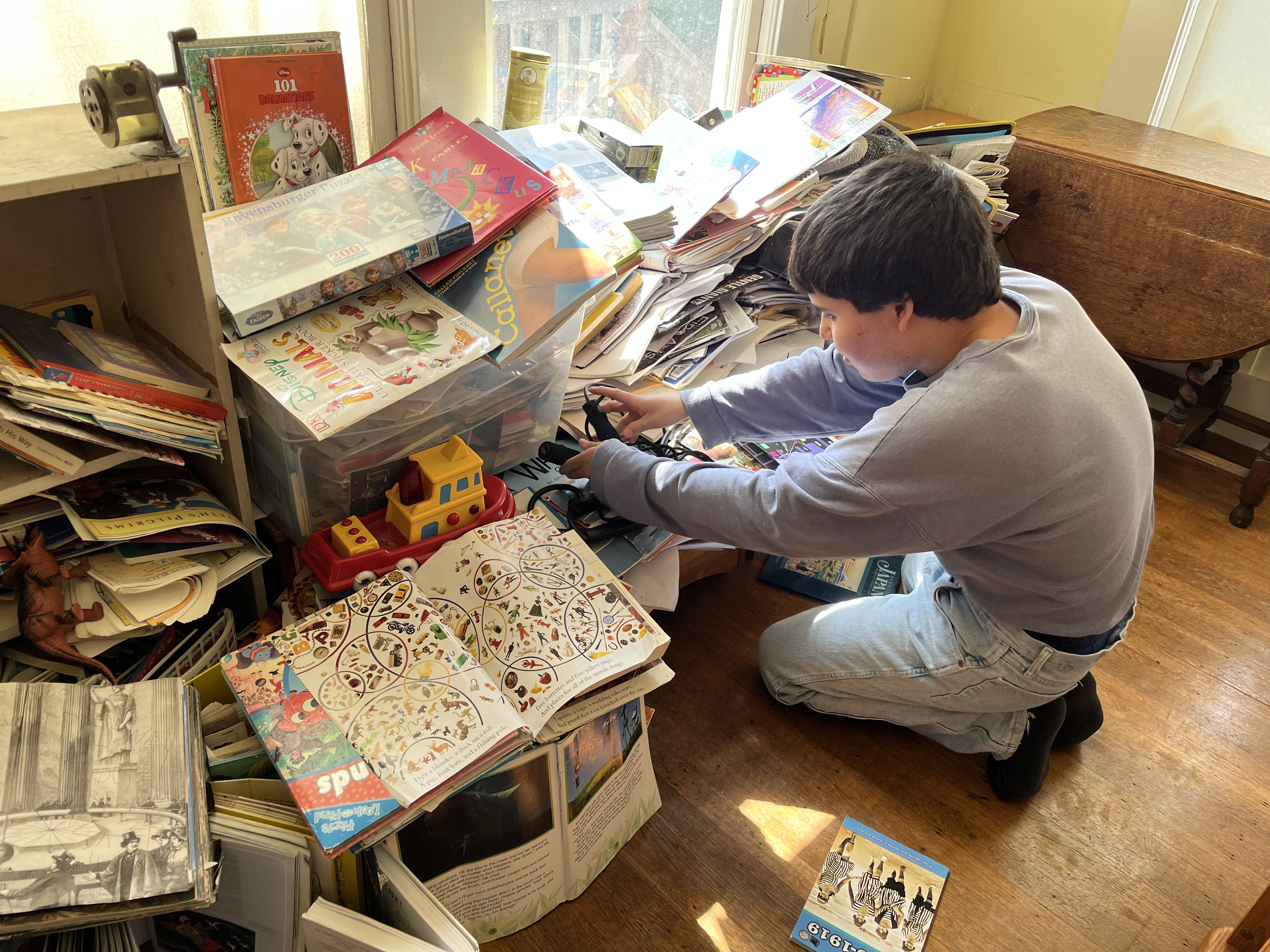 Breathlessly (and sleeplessly) guiding my boys along the escalator of infancy, preschool and beyond—with the huge additional emotional, time, and resource drain of an autism diagnosis for my younger son—meant that our once well-organized house swiftly started taking on hoarder house qualities. There was no time to sort and discard enough objects to stem the tide of incoming items as the boys grew.