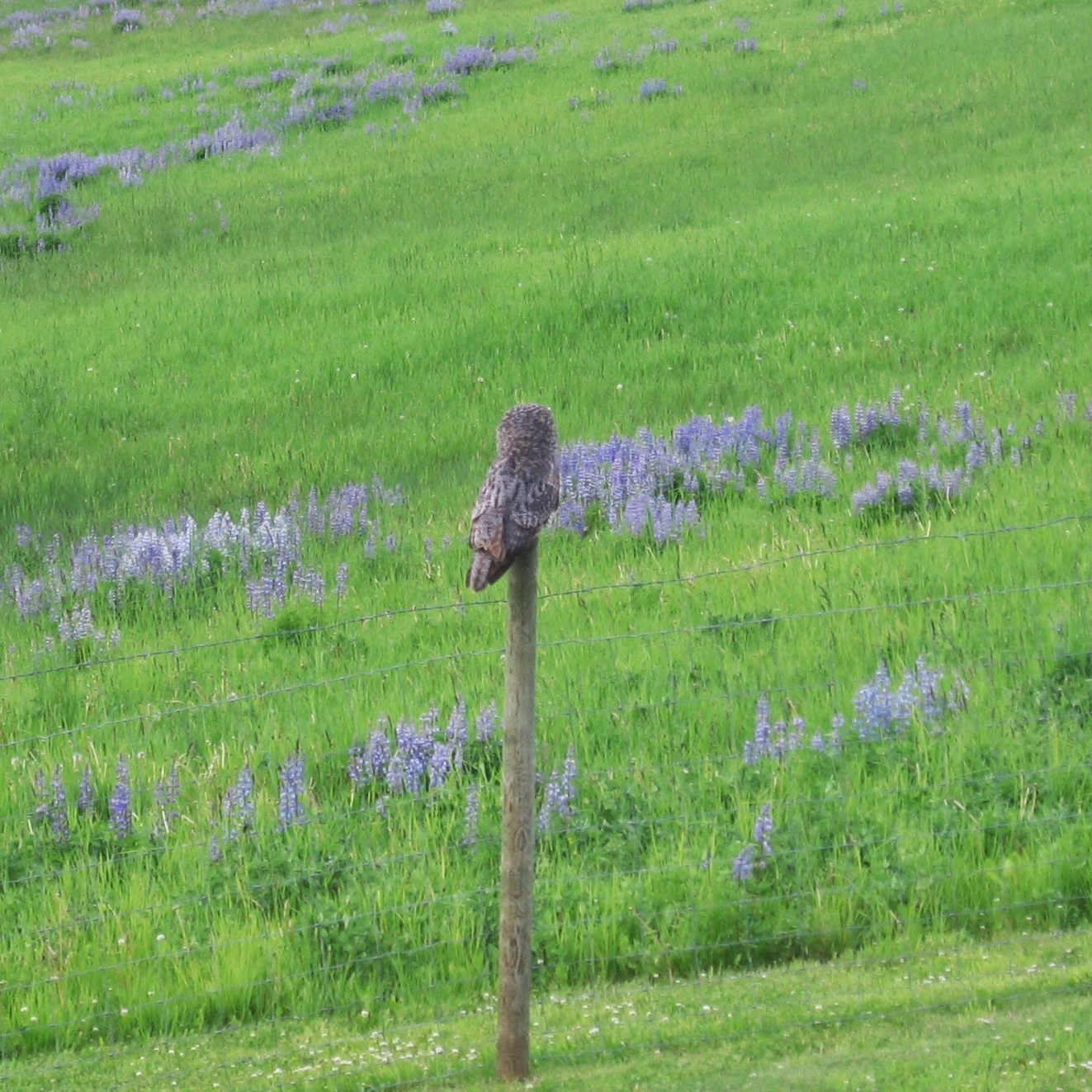 Just off to the side of the road in the grasses sat an owl. It was one of the beautiful Great Greys common to our region, though it was strange to observe it out in the open and in the daylight, just sitting there. It was obviously distressed by the angry crows, yet it was not moving to escape them.