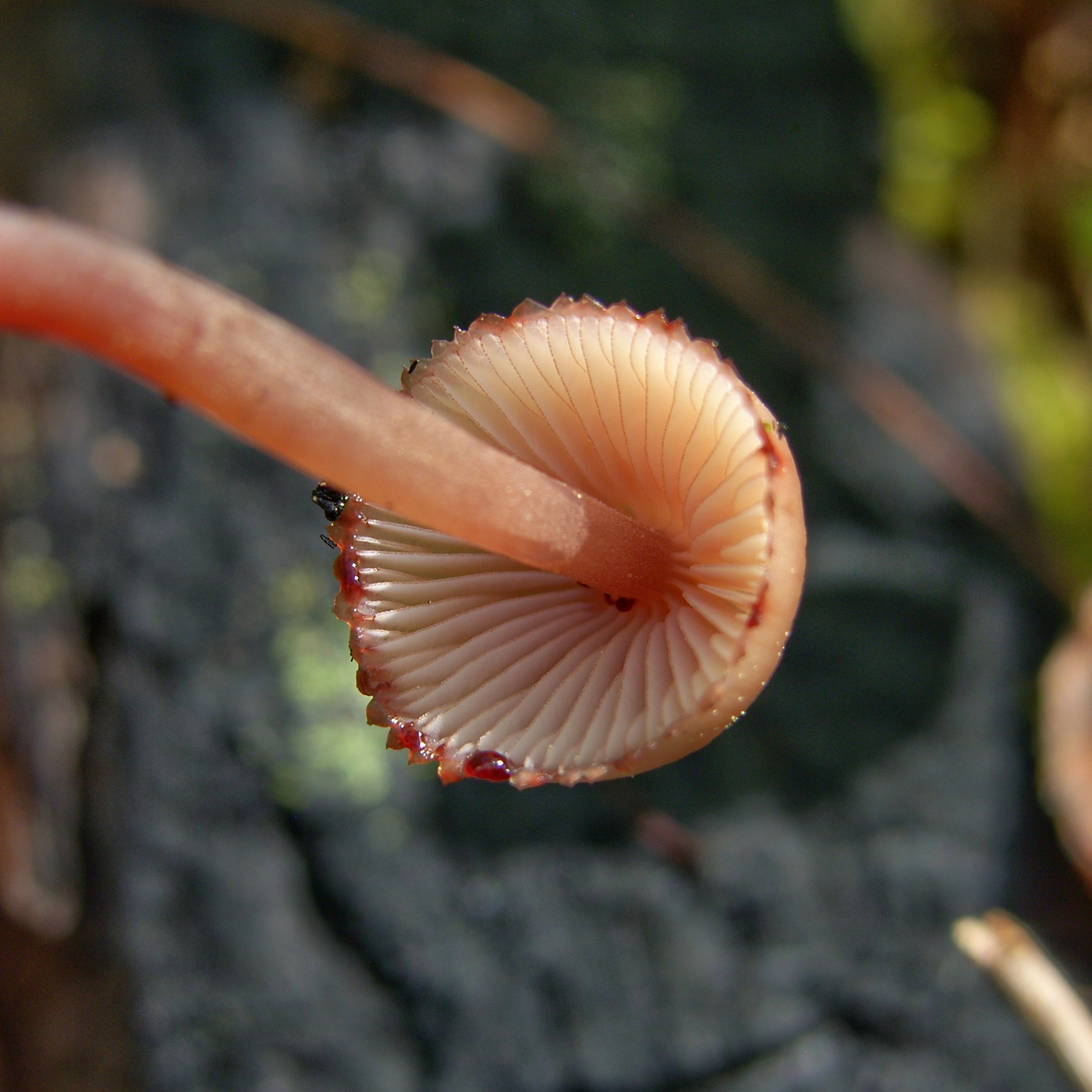 So, you’re out for a hike and you happen to pass by a log, and there you see a small cluster of Bonnet mushrooms. You can’t help stopping to take a closer look, and then, you notice that these mushrooms are covered in a red liquid, and then you ask yourself, “ Did a terrible accident occur here?”